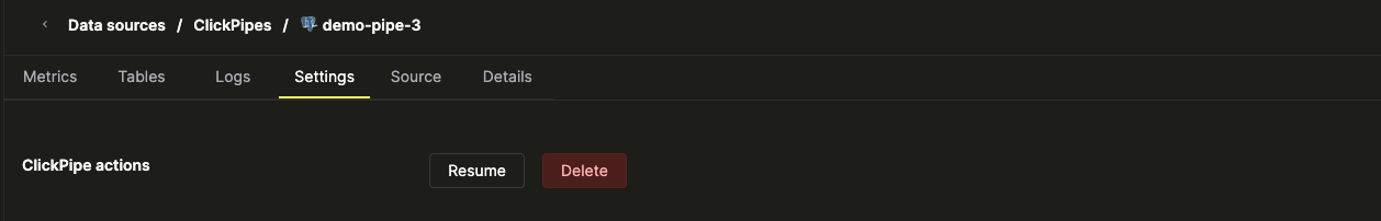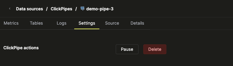- На вкладке Data Sources нажмите на Postgres ClickPipe, который вы хотите приостановить.